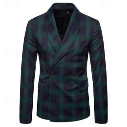 heren geruit preppy blazer jas sportjas zwart kaki groen formeel casual klassiek modern alle seizoenen polyester katoen mix double breasted blazer
