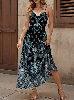 Dames Maxi-jurk Zonnejurk A lijn jurk Slipdress Vakantie Casual Boho Strand Normale pasvorm Grafisch Wijnoogst Boho Paisley Damast Mouwloos V-hals Rood blauw Paars Groen Zomer Lente
