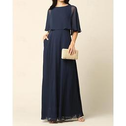 A-Lijn Cape Jurk Moeder van de Bruid Jurk Elegante Eenvoudige Minimalistische Boot Hals Bruidsgast Jurk Vloerlengte Chiffon Halve Mouw met Effen Kleur