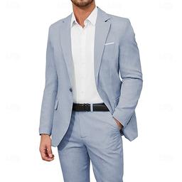 Heren liiketoiminta Casual Linnen pakken Ingesneden revers Stoffig blauw Beige Formeel Effen Standaard pasvorm 2-delige set Enkele rij knopen met één knoop