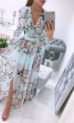 Dames Lange jurk maxi-jurk Cocktail jurk Jurk met print Modieus Buiten Teaparty Weekend Normale pasvorm Bloem Lange mouw V-hals Blozend Roze Paars Licht Blauw Zomer