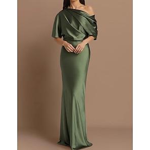 Sheath Moeder van de Bruid Jurk Bruiloft Gast Formele Avond Elegante Feest Off Shoulder Sweep Borstel Train Satijn Half Mouw met Ruching