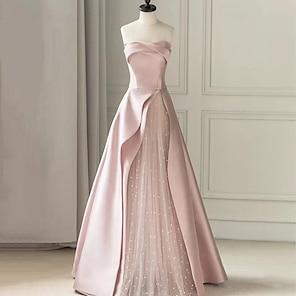 Jumpsuits Tot de grond Avondjurken Baljurk met overrok Formele kleding Elegant Celebrity-Stijl Lange mouw V-hals Bruiloft gast Verloving Herfst bruiloftsgast Satijn met Sjerp / Lint Overrok Appliqués