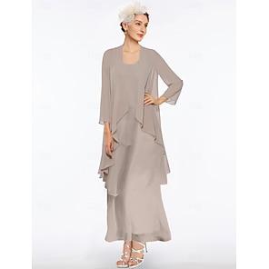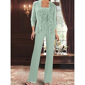 Broekpak Tot de grond 3/4 mouw Vierkante hals Elegant Eenvoudig Bruiloft gast Polyester Moeder van de bruid jurk met Effen kleur