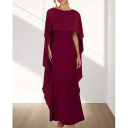 Strak / kolom Tot de grond Galajurken Avondjurken Baljurk Formele kleding Elegant Halve mouw Met sieraad Bruiloft gast Formele avonden Herfst huwelijksreceptie Polyester met Plooien