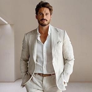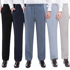 Voor heren Chinese Meerdere zakken Effen Kleur Draagbaar Ademend Volledige lengte Bruiloft Buiten Feest Vakantie Vintage Lichtkaki Licht Grijs Micro-elastisch