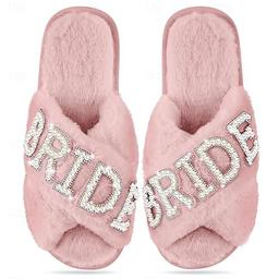vrijgezellenfeest pluizige roze met parels versierde 'bruids' slippers voor romantische huwelijksreizen en vrijgezellenfeesten