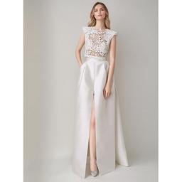 Gescheiden Bruidsjurken A-Lijn Ronde Hals Mouwloos Vloerlengte Splits Plooien Bruidsjurken Met Bloemmotieven Vast Kleur