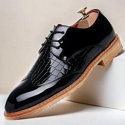 heren witte lakleren oxford schoenen met krokodillenmotief en houten zool - strakke formele schoenen voor bruiloften en speciale gelegenheden