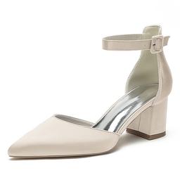 trouwschoenen voor bruid bruidsmeisje vrouwen peep toe wit ivoor blauw zilver goud zwart groen satijn pumps blokhak enkelband bruiloft feest Valentijnsdag dagelijks minimalisme mode klassiek