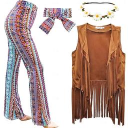 Retro / vintage 1960erne 1970erne Cosplay kostyme Drakter Hippie Kostyme Dame Karneval Maskerade Ytelse Fest Pride-parade Voksne Vest Bukser Pannebånd
