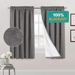 Linestoff Gardiner Soverom Solid 100% Blackout Termisk Isolert med Hvit Foring Rommørkende Gardiner/Draperier Stue Barnerom 2 Deler B52 x L84