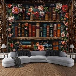 Blomster bokhylle hengende veggteppe kunst stor veggteppe mural dekor fotografi bakgrunn teppe gardin hjem soverom stue dekorasjon