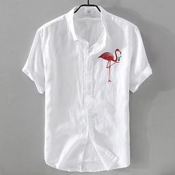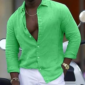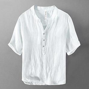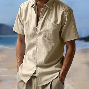 Herre Linskjorte Uformell skjorte Skjorte i bomullslin Skjorte med knapper Mønster Feriereise Gate Hvit Mørk Marineblå Himmelblå Kakifarget Kortermet Knaphul Sommer Klær Spenne