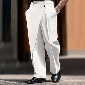 Herre Dressbukser Bukser Knapper Lomme Elastisk midje عادي Pustende Fukttransport Full lengde utendørs Virksomhet Daglig Mote Gatemote Svart Lysegrå Mikroelastisk