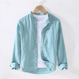 Herre Skjorte Linskjorte Uformell skjorte Skjorte med knapper Bomullsskjorte عادي Feriereise Hawaiisk Svart Hvit Kongeblå Blå Langermet bestefars krage Sommer Vår Klær Knapp ned