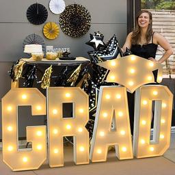 konfirmasjonsdekorasjoner 60/90/120cm store grad lys opp bokstaver konfirmasjonslue hvit grad bokstav med lys for barnehage førskole videregående skole høyskole grad fest