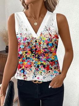 Damecamisole Tank Top Blomster Grafikk Stilig Casual Uten Ermer V Hals Regulerte Topper Daglig Print Hvit Rosa Brun Sommer