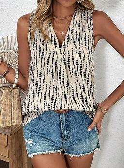 Dame Top Tank Topp Grafisk Prikket Stilfull Avslappet Uten Ermer V Utringning Regulerte Topper Daglig Trykk Rosa Grønn Beige Sommer