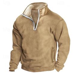 Herre Polo genser Polarfleece Kvart glidelås genser Kakifarget Halv glidelås عادي Lomme Sport & Utendørs Daglig Ferie Polyester Gatemote Grunnleggende Fritid Vinter Høst Klær Gensere Gensere Langermet