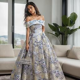 A-linje Gulvlengde Ballkjoler Elegant Årgang Fest Langermet Løse skuldre Aftenselskap Hage fest Nylon med Blomstertrykk