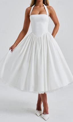 Dame Midikjole Hvit kjole Eksamenskjole Mote Moderne Bursdag Ferie Eksamen Normal عادي Ermeløs Grimehals Svart Hvit Rød Sommer