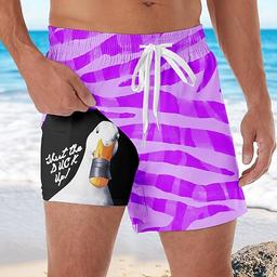 Herre Geometrisk Morsom And Fôret shorts 2 i 1 svømmeshorts Badeshorts Medium Midje Hawaiisk Feriereise Ferie Strand Klær Sidelommer Med kompresjonsforing Elastisk snøring i midjen Designer Klær