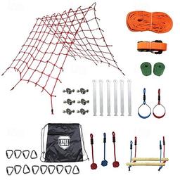 Slakkline utendørs hinderløype med vaklevoren bro for barn, ninja slackline 80 fot line med huske, ring, utendørs ninjabane treningsutstyrssett for bakgården