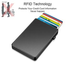 Tynn aluminum kortholder lommebok ID kredittkortholder mini RFID-blokkerende automatisk pop-up bankkort oversikt