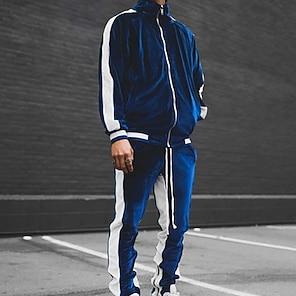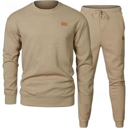 Herre Jacquard Joggedress T-skjorte og shorts Sett Antrekkssett Crew-hals utendørs Daglig Sport Lomme Snorer 2 deler عادي Svart Kakifarget Militærgrønn Polyester Sportsklær Klassisk Fritid Vår