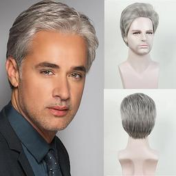 Syntetiske parykker Rett Asymmetrisk frisyre Parykk Kort Grå Syntetisk hår Herre Moteriktig design Myk Naturlig Grå