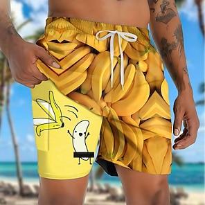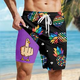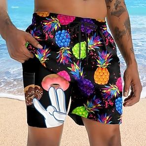 Herre Ananas Morsom And Fôret shorts 2 i 1 svømmeshorts Badeshorts Medium Midje Hawaiisk Feriereise Ferie Strand Klær Sidelommer Med kompresjonsforing Elastisk snøring i midjen Designer Klær