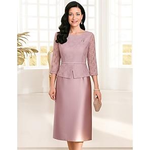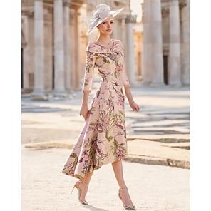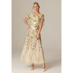 A-linje Te-lengde Festkjole Cocktail Kjole Gjestekjole til bryllup Halvlange ermer Besmykket Elegant Bryllupsgjest Chiffon Tyll Kjole til brudens mor med Perlearbeid Appliqué