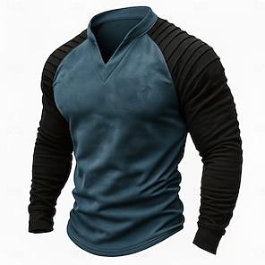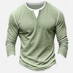 Herre Skjorte T-skjorte med V-hals Langermet skjorte Bambus-T-skjorte Langermet V-hals Vår & Vinter Helfarge Lapper Daglig Fritid Gate stil falske to stykker utendørs Gate Avslappet Lyseblå Lysegrønn
