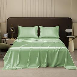 Ren Farge Sateng Imitert Silke Fire-delt Sett Enkle Laken Madrassbeskyttere Putekapper Sengetøy