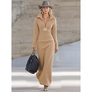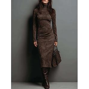 Dame Midikjole Tubekjole Ferie Fritid Bohem Daglig Stevnemøte Tynn عادي Langermet Rullekrage Mørkebrun Lysebrun Grå Høst Vinter