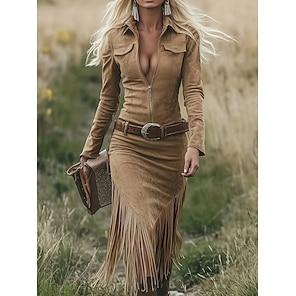 Dame Midikjole Tubekjole Fritid Bohem Fest Daglig Tynn عادي Langermet Knaphul Lysebrun Høst Vinter