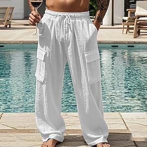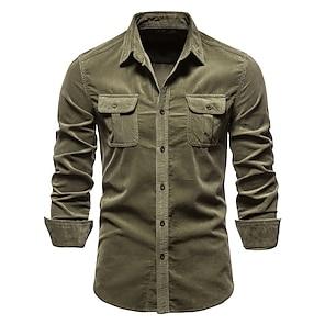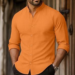 Herre linskjorte Uformell skjorte Skjorte med knapper عادي Feriereise Gate Svart Hvit Mørk Marineblå Beige Langermet bestefars krage Vår sommer Klær Lomme