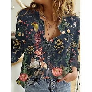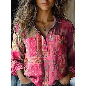 Dame Skjorte Blomstret Stripet Stilfull Moderne Langermet Skjortekrage Vanlige topper Daglig Ferie Lomme Knapper Trykt mønster Blå Lilla Fuksia Oransje Sommer