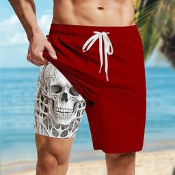Herre Hodeskaller Fôret shorts 2 i 1 svømmeshorts Badeshorts Medium Midje Hawaiisk Fritid Feriereise Ferie Strand Klær Sidelommer Fargeblokk Med kompresjonsforing Designer Klær