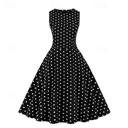 Retro / vintage 1950-tallet Rockabilly Kjoler Swing kjole Polkadotter Kostyme Dame Karneval Maskerade Dagligdagstøy Utdrikningslag Voksne Kjole Hjemkomstkjoler