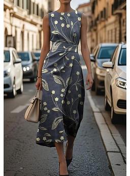 Dame Midikjole Tubekjole Bodycon kjole Formelt Semiformelle kjoler Kontor Daglig Normal Blomstret Grafisk Ermeløs Crew-hals Himmelblå Oransje Mørkeblå Grå Sommer Vår