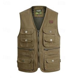 menns fiskevest turvest / jakke ermeløs yttertøy jakke reise cargo safari vest topp utendørs vindtette flerlommer hurtig tørk lett høst vår bomull hær grønn khaki jakt