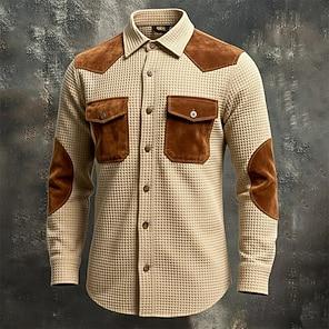 Herre Skjorte Arbeidsklær Skjorter Arbeidsskjorter Skjorte med knapper Cargo skjorte Svart Militærgrønn Kakifarget Beige Langermet عادي Ensfarget Krage Daglig Klær 100 % bomull Grunnleggende