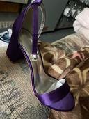 kvinners lilla satengblokkhæl bryllupssko - elegante ankelrem med åpen tå brudesandaler for formelle arrangementer og fester