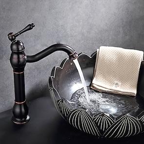 badekar kran høy 11 tommer, servant blandebatteri servant kraner dekk montert, monoblokk rund enkelt håndtak kermaisk ventil messing kraner svart gull krom