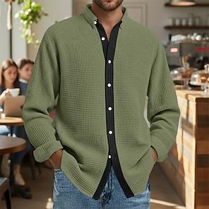 Herre Dresskjorter Skjorte med knapp ned Stripete skjorte Skjorte med krage Stripet Bryllup Arbeid Svart Hvit Rød Navyblå Langermet Krage Klær