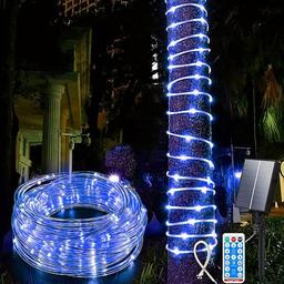 solar tau lys utendørs vanntett med fjernkontroll, 50m-500led/100m-1000led solcellestrenglys, 8 moduser, ekstra lange eventyrlys med timer solrør, egnet for hageterrasse, gårdsplass