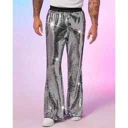 Herre Disco bukser Bukser Uformelle bukser Paljetter Lomme Elastisk midje عادي Komfort Fest Stadie Disco lys Årgang Glitter Sølv Rød Mikroelastisk