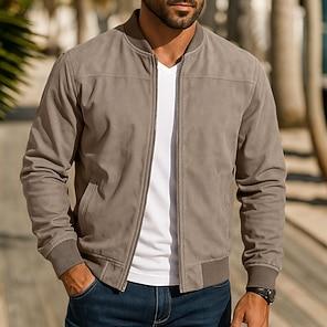 Herr Lättviktsjacka Bomberjacka Cargojacka Övergångsjacka Semester Dagligen Håller värmen Ficka Höst vinter Slät Mode Klassisk Hög krage Normal Svart Marinblå Blå Brun Armégrön Jacka